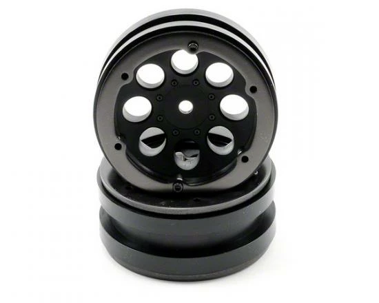 This is a set of two Axial 1.9 8-Hole Black Beadlock Wheels. Do you hate having to glue up your tires? What about when you have to replace the tires and have to throw out a perfectly good wheel? Well, don’t worry; we have you covered with the Axial bead-lock series of wheel. All Axial wheels are made from super strong composite material and come in several high quality finishes so you can customize the look of your truck.