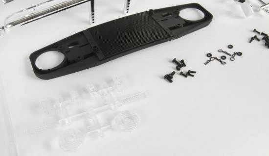 * Highly detailed custom painted body shown. Body comes clear, with pre-cut decals, window masks, and accessory parts shown below.