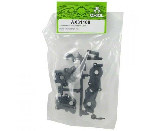 Axial two speed transmission case. Why set-up for either low speed crawling or high speed bashing only. Axial’s two speed transmission case allows you the luxury of both worlds in one package! Crawling or bashing this transmission has you covered!