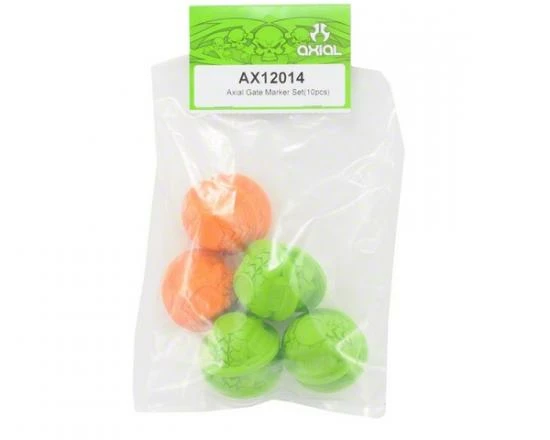 This is a set of ten Axial Micro Gate Markers. This set includes four orange gate markers, and six green gate markers. These gate markers are perfectly sized for both 2.2 and mini rock crawler competitions. The directional pattern helps direct competitors in the right direction and an open area on top of marker allows writing of gate number or start/finish designation.