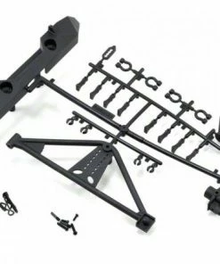 Check out AxialÂ’s officially licensed Poison Spyder Customs RockBrawler rear bumper. This small scale version was designed specifically for the SCX10 as a high clearance rear bumper for hard core off-road use. Integrated tabs work great with the included D-rings, which can be used as an actual tow point. The RockBrawler rear bumper also features recessed light buckets for those night time adventures, as well as a fully functional swing out tire carrier.