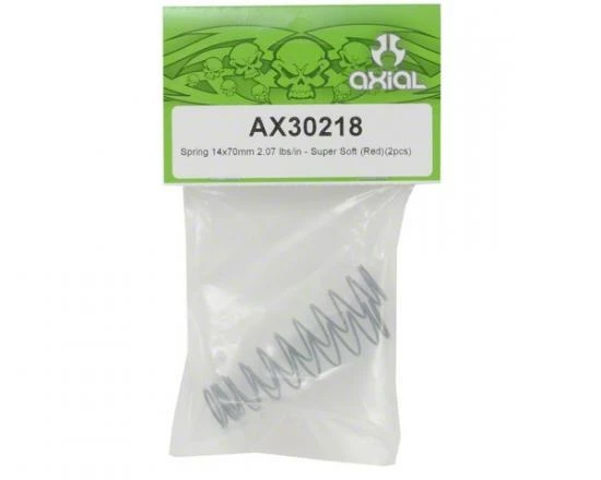 This is a set of optional Axial 14x70mm Red Shock Springs (Super Soft – 2.07 lbs/in), and are intended for use with the Axial SCX-10 Rock Crawler.Fine tune the ride of your SCX10 to your liking with optional spring choices. Availablein multiple spring rates you can dial in just the right amount ofarticulation.