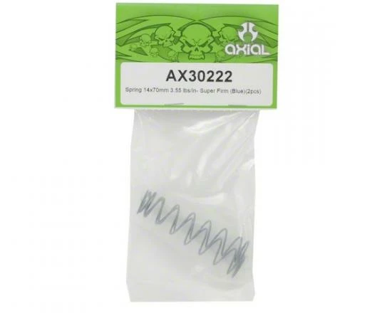 This is a set of optional Axial 14x70mm Blue Shock Springs (Super Firm – 3.55 lbs/in), and are intended for use with the Axial SCX-10 Rock Crawler. Fine tune the ride of your SCX10 to your liking with optional spring choices. Available in multiple spring rates you can dial in just the right amount of articulation.
